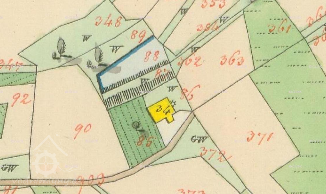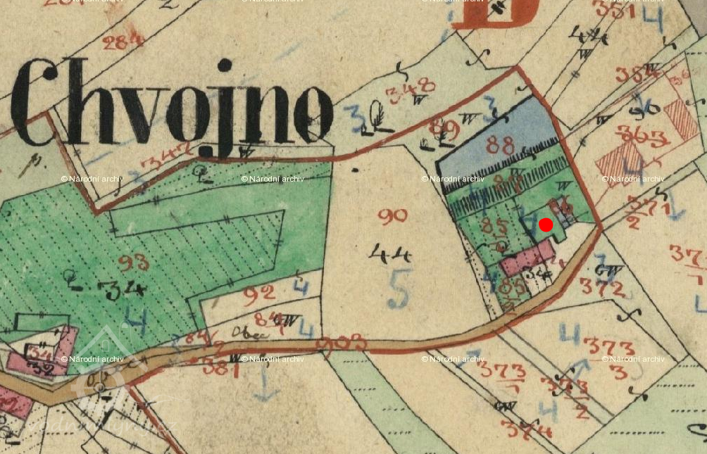 Severně od Holic leží obec Vysoké Chvojno, která již roku 1336 byla městečkem a měla tvrz. Vedle domku čp. 44 se "odedávna" nacházel mlýn s korečkovým kolem (voda je samočinně nabírána do kapsovitých nádob pohybem korečku). Voda na mlýnské kolo byla přiváděna vantroky ze tří rybníčků nad vilou markraběte z Pallavicini na východním konci obce. Rybníčky byly spojeny a voda v nich bývala prý pramenitá.