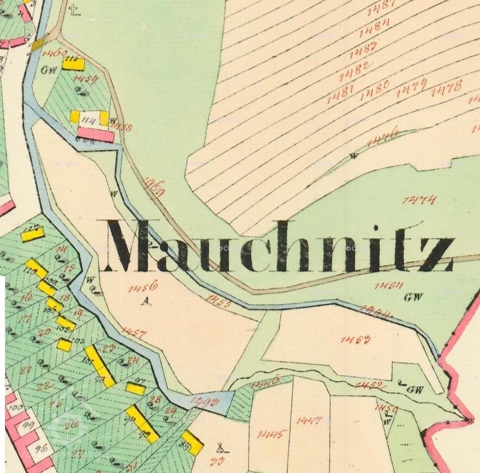 1376 kupuje mlýn Boček z Divic, později psaný z Mouchnic