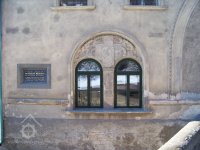 Okno a pamětní deska, 2010, © https://commons.wikimedia.org/, (Prvky na obrázku: okno, plastická omítková výzdoba fasád a štítů)