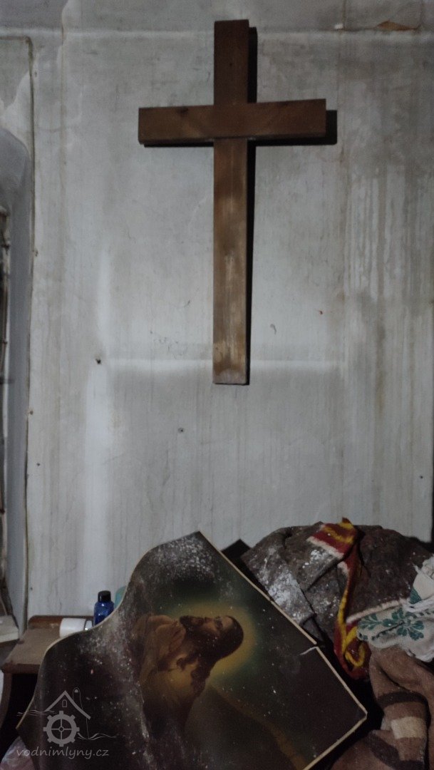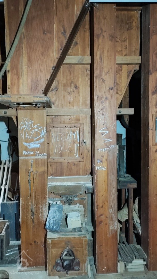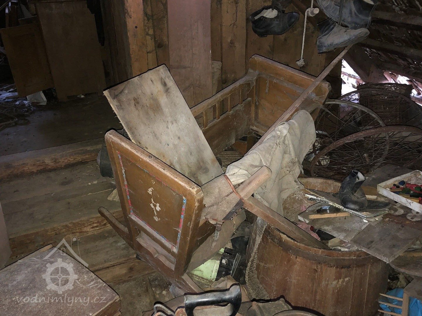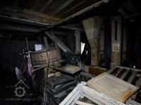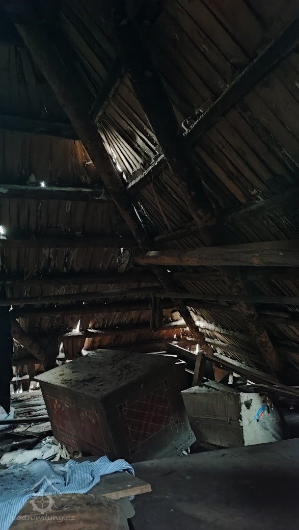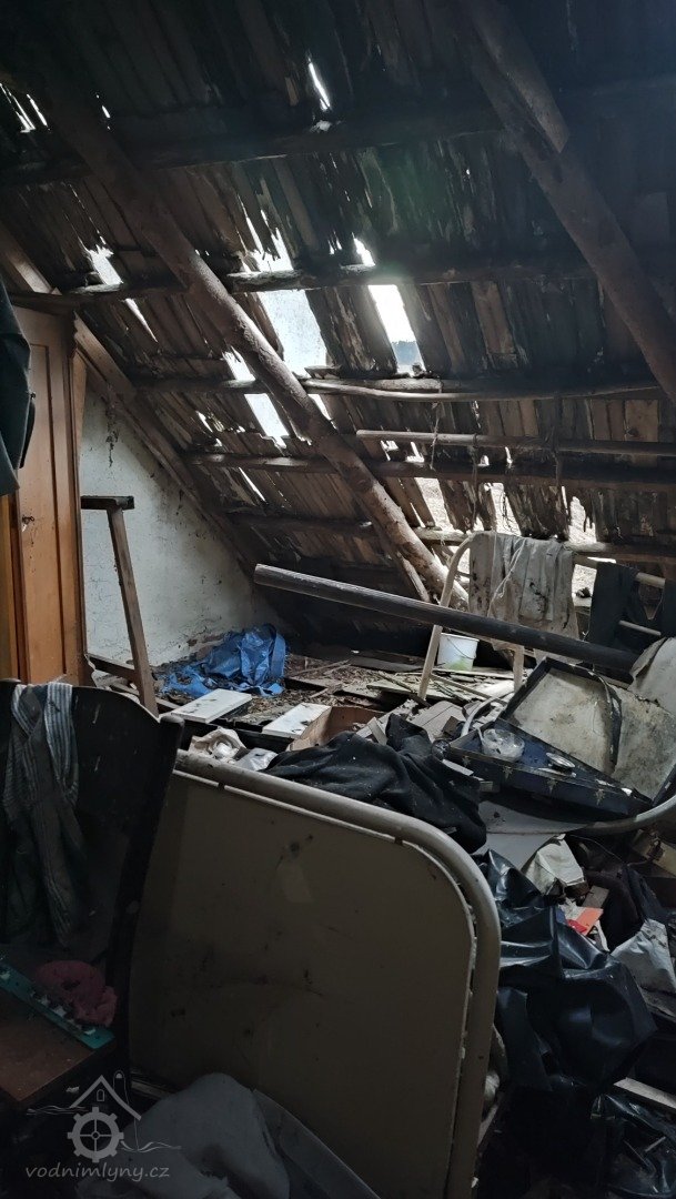 Unikátně zachovalý mlýn a katr, bohužel značně teče do šindelové střechy nad obytnou částí a dům je volně přístupný oknem.