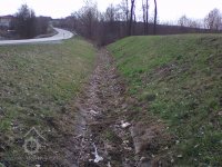 Jsou vidět zbytky náhonu na ulici Slavkovská u kruhového objezdu.