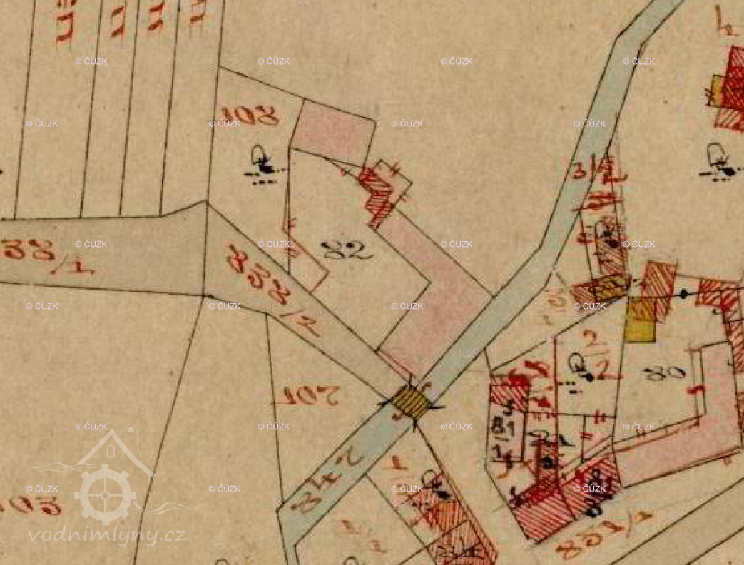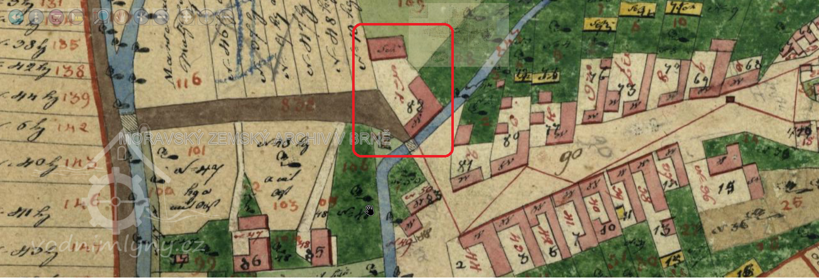 Popis1930: 1 kolo na svrchní vodu, hltnost 0,24 m3/s, spád 3,1 m, výkon 6 HP