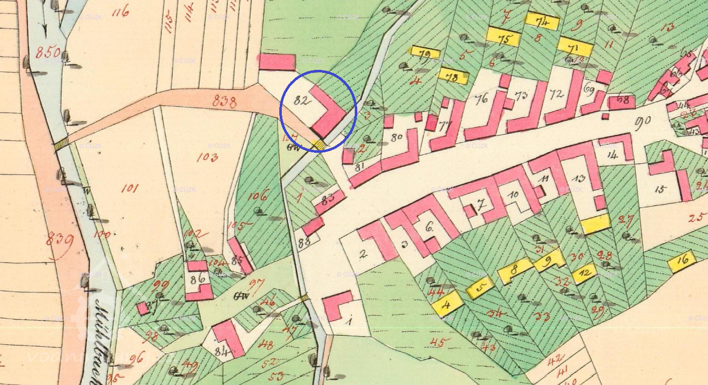 1821 se zde ženil mlynář Martin Muller z Drysic