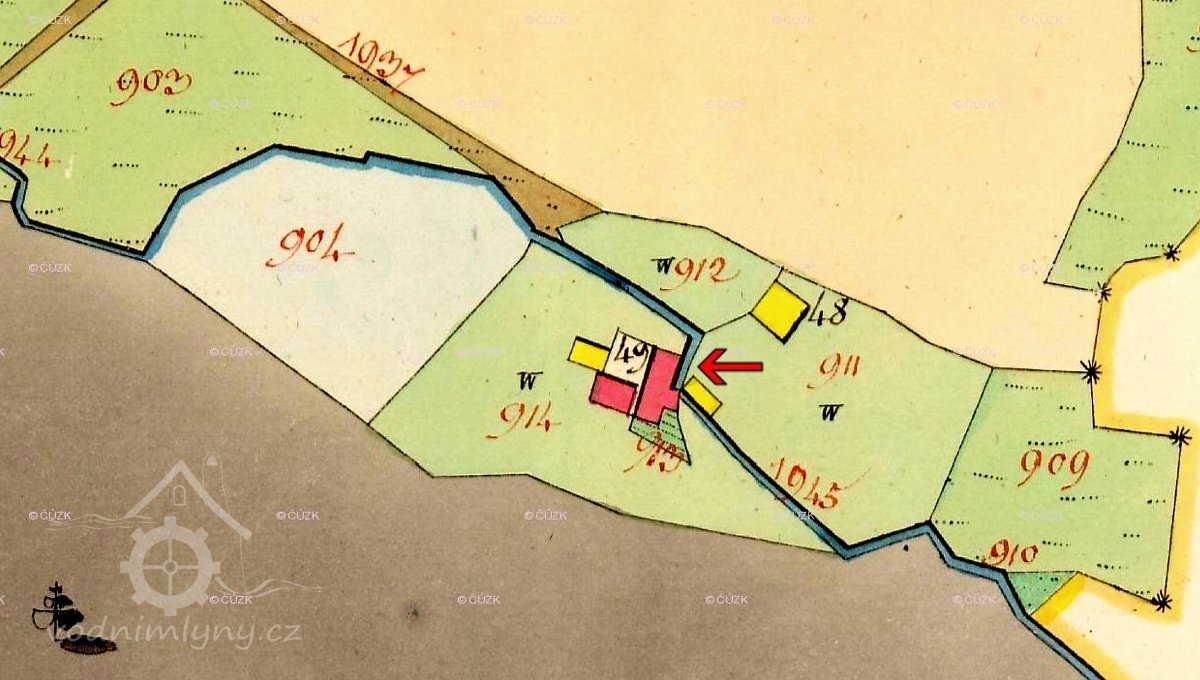 Nad mlýnem se nachází rybník, nyní obnovený (J.Pešta).