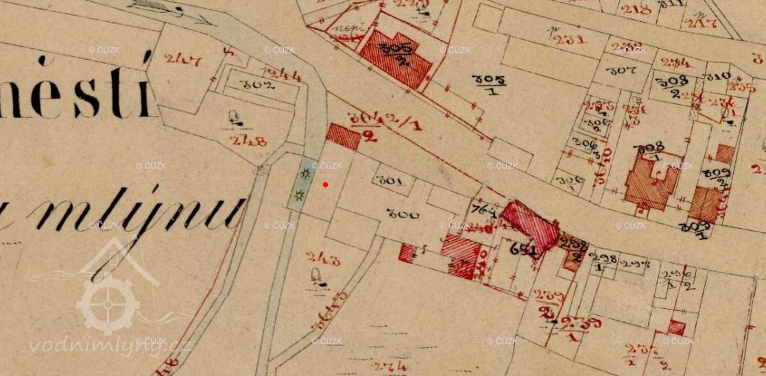 strouhu bylo Vackovi cíditi od kol svých proti vodě až do nového jezu, po vodě do rohu Blažkovy louky (proti stodole Varmúčků), kde byla nová záměra osazena. Jez nad a splav pod mlýnem, kterýž Bosák s mlynářem Na trávníce Jankem Řepínským společně stavěli, byli Vacek i jeho budoucí povinni dělati sami, Jankovi bylo cídit strouhy od záměry až do svých kol.