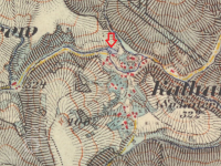 Mlýn dohledán na mapách I. vojenského mapování. (JV)