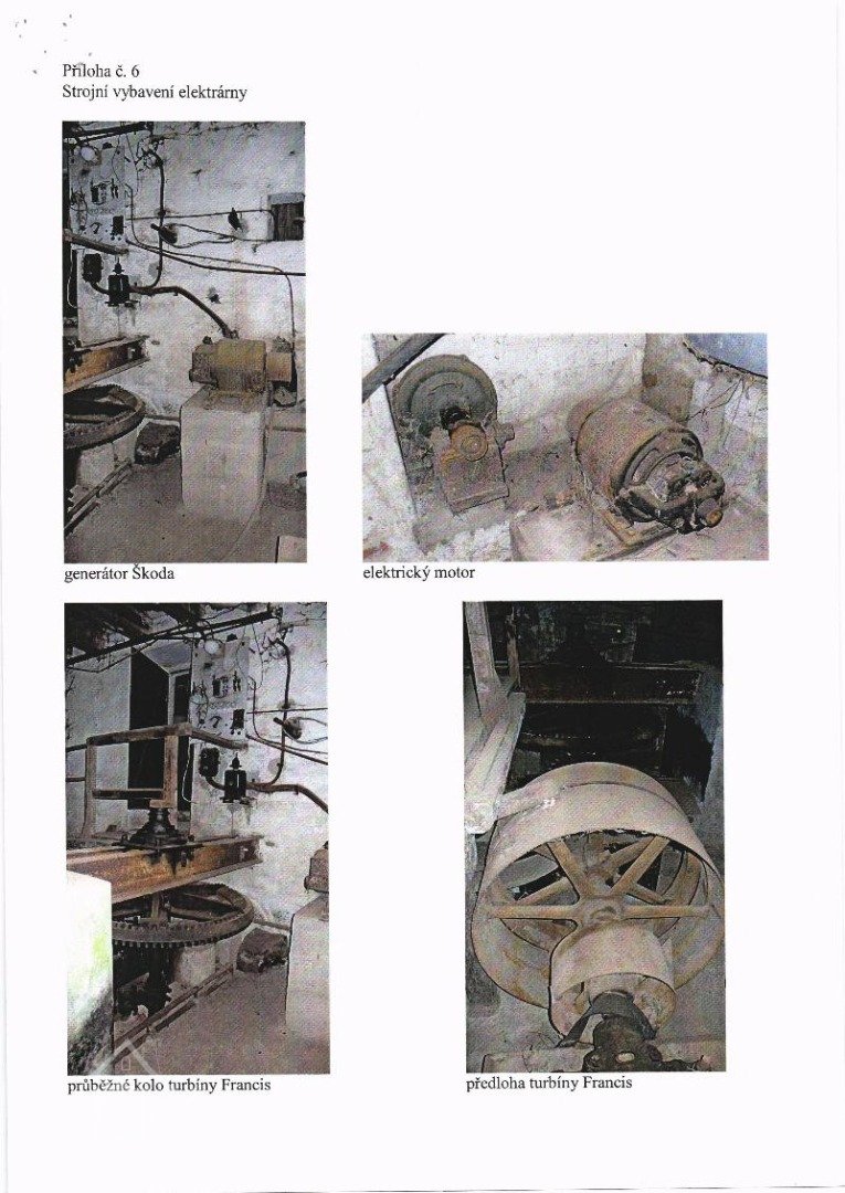 V železobetonové kašně pod podlahou strojovny je umístěna vertikální kašnová turbina Francis. Její hřídel prochází do prostoru strojovny, kde je zavěšen v axiálním ložisku, neseném dvěma ocelovými nosníky profilu I. Ty jsou na jednom konci zazděny, druhý je podepřen betonovým sloupem.