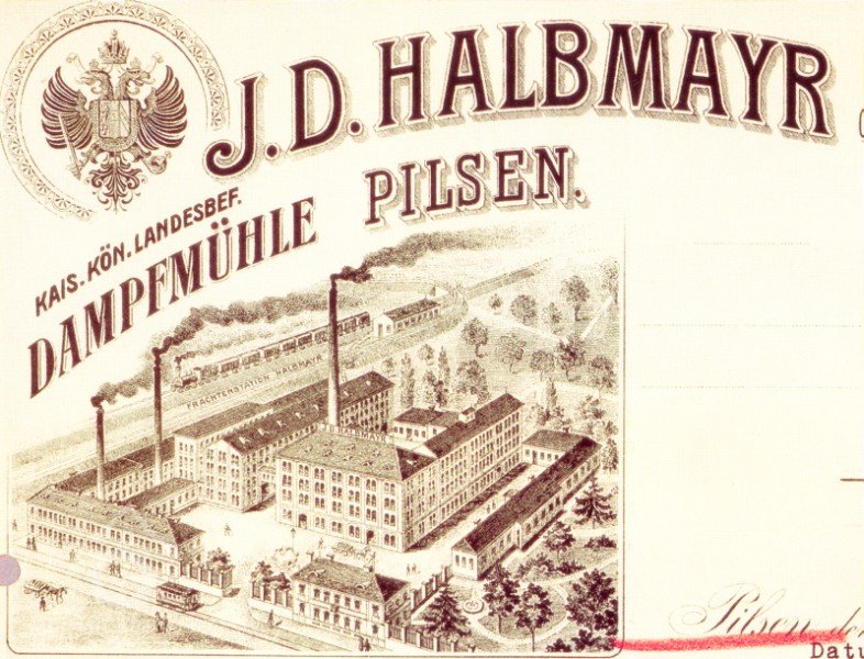 1877 - mlýn i jeho parní pekárnu kupuje Josef Dionys Halbmayer z Mariánských Lázní a rozšiřuje ho v moderní závod.