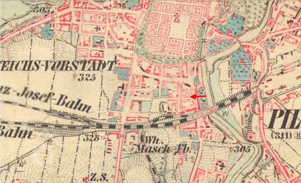 1910 - k jižnímu průčelí původního skladiště obdélníkového půdorysu.