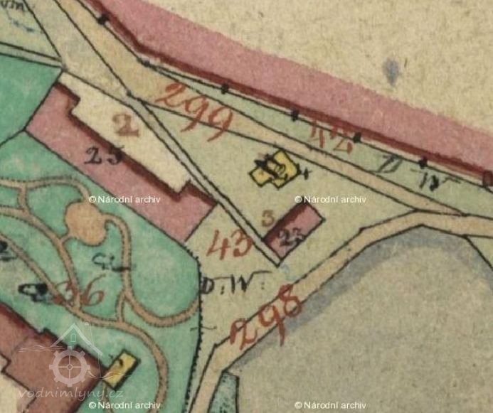 Na Císařských povinných otiscích a Indikační skice je zakreslen zděný dům č. parc. 23, čp. 3, který byl pravděpodobně mlýn.