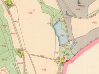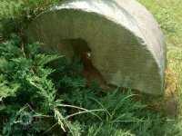 Viditelné místo kde byl vedený mlýnský náhon. Mlýnský kámen.