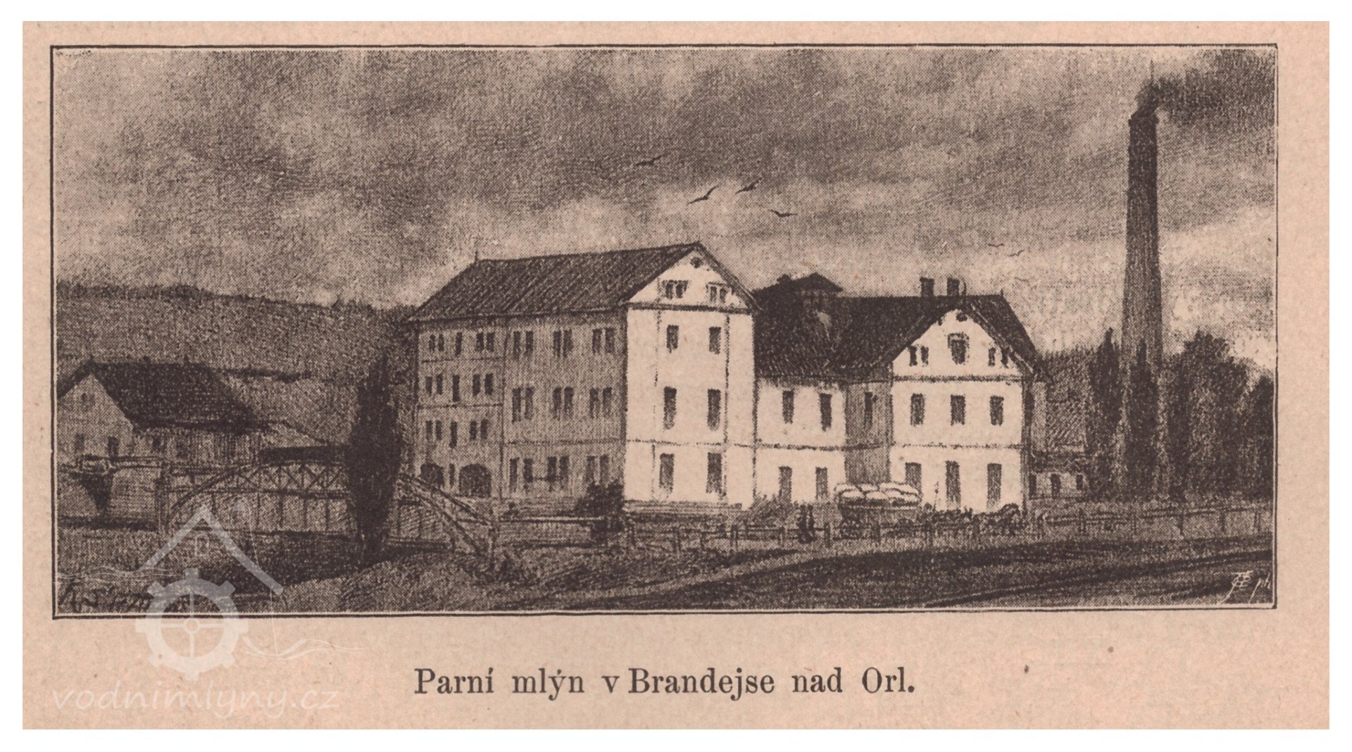 Počátek existence tohoto mlýna je popsán v pamětním spisu z roku 1859, „V roku Páně 1849 odkoupil p. Hynek Galutšek, bývalý nájemce panství Brandýsa, díl sousedské půdy pod šlejferenským mostem, kde základ k novému mlýnu položil, nemoha však z nedostatku peněz stavbu tu ukončit, nedostavěné toto dílo p. Janu Hanákovi, mlynáři na Moravě, v r. 1853 odprodal, který z polovice umělecké, z polovice obyčejné