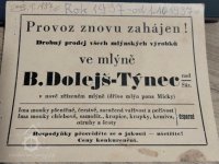 1798 J.Prášek odstoupil od mlýna krupní stoupu a místo v mlsně 13 loket zdéli a 11 loket šířky světnici s kamny k svobodnému vládnutí a přistavení technické fabrice.