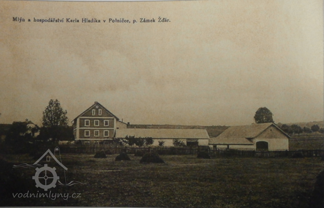 V mlýně byla pro pohon používána Francisova turbína, která roztáčela transmisi umístěná v suterénu mlýna. Voda na turbínu protékala přes betonové vantroky, kde jsme se koupali (takový bazén, kde jsem se naučil i plavat). Pokud bylo málo vody, tak pohon obstarával elektromotor. Pan Hladík (úplně slepý) chodil po mlýně, že by nikdo nepoznal. že je slepý. Sám chodil nahodit plochý řemen na kolo na transmisi, aby mohl skladník (Jan Peterka, bývalý legionář z Ruska) sešrotovat pro JZD, ale i občany Polničky obilí (za tři koruny pytel - papírové tříkoruny házel do zásuvky u stolu). Velice rád jsem poslouchal vyprávění těchto dvou pánů. Když šel pan Hladík na besedu, zabouchal slepeckou holí na poklop a pan Peterka otevřel poklop na schodech a tak mohl přijít z bytu do mlýnice. V šedesátých letech ve mlýně JZD skladovalo obilí, které jsem chodil hrozně rád (jsem ročník 1955) přehazovat dřevěnou lopatou obilí, aby dobře uschlo. To jen moje vzpomínky na mládí ve mlýně. (Libor Ptáček)