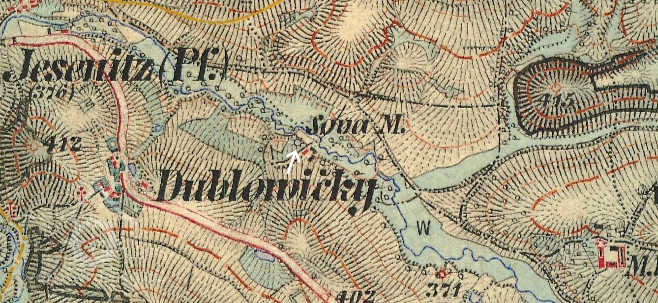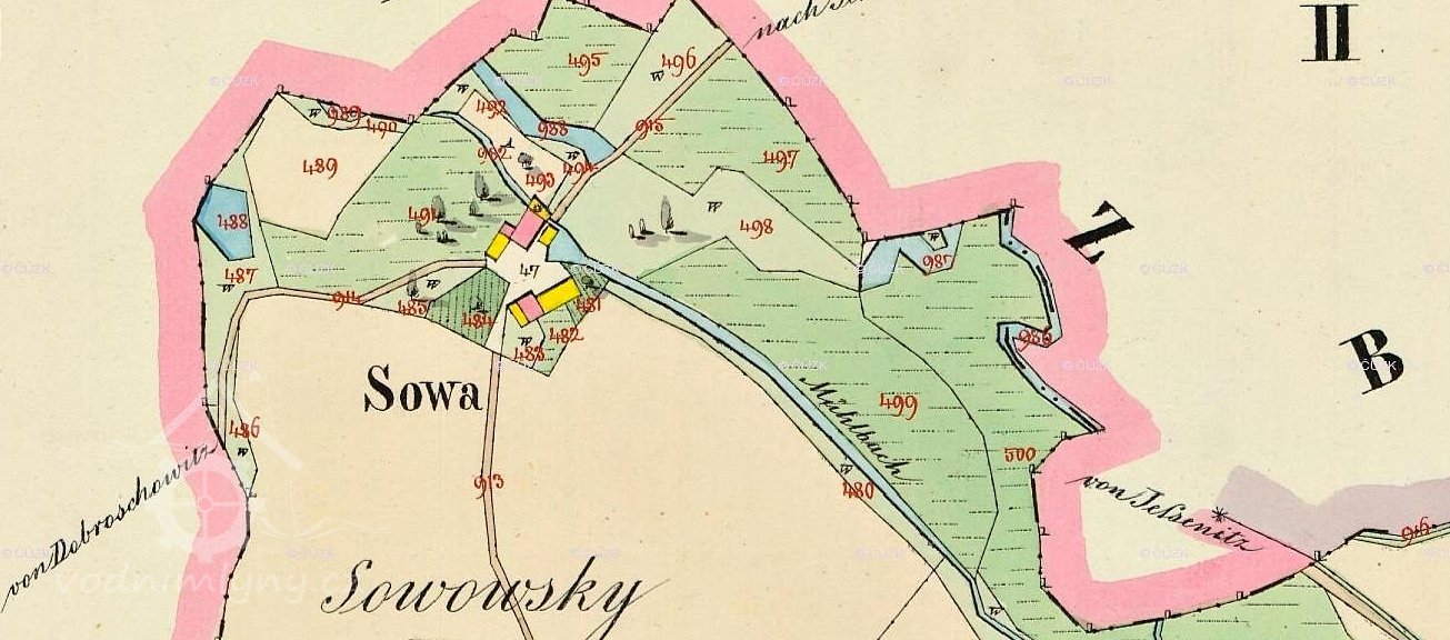 první písemná zmínka je z roku 1542 v Deskách zemských - Sovův mlýn nad Jesenicí