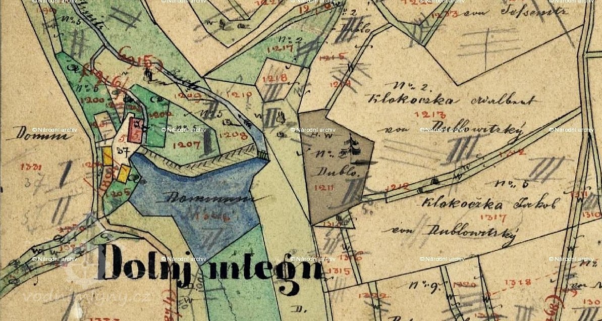 1874 Antonín a Anna Kalouskovi vykoupili z emfyteuticjých břemen vysokochlumeckého panství (mletí pro vrchnost, placení činže, předkupní právo), zůstalo právo odebírat vodu z rybníka, ačkoliv vlastník rybníka zůstával nejasný.