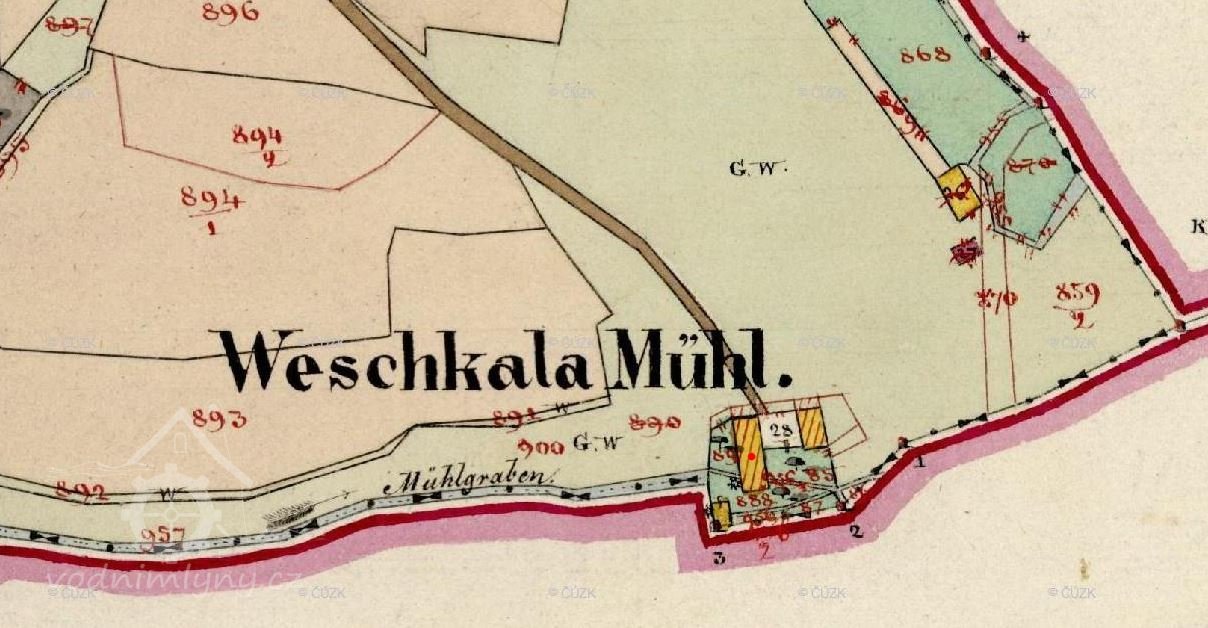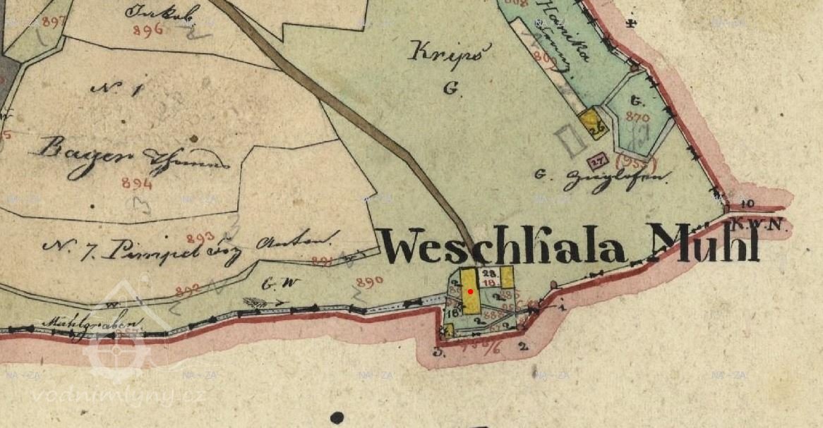 V roce 1930 byl majitelem mlýna Vilém Hanika, Křivec č.p. 18. Potok se nazýval Hasselbach.