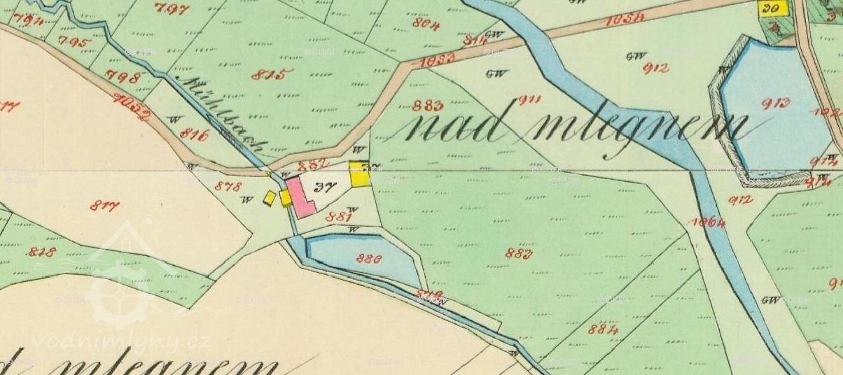 V roce 1939 byl mlýn vybaven vodním kolem na svrchní vodu o průměru 408 cm, šíře mezi věnci 90 cm, 9 obrátek za minutu, max. výkonnost 10 KS. (JV)