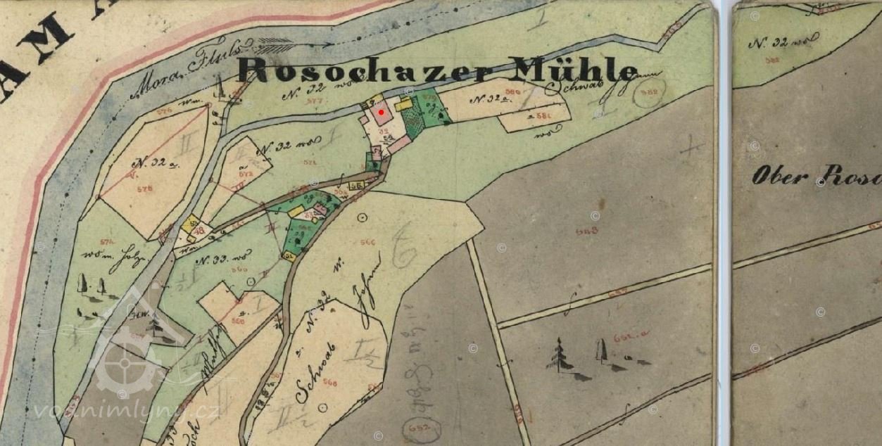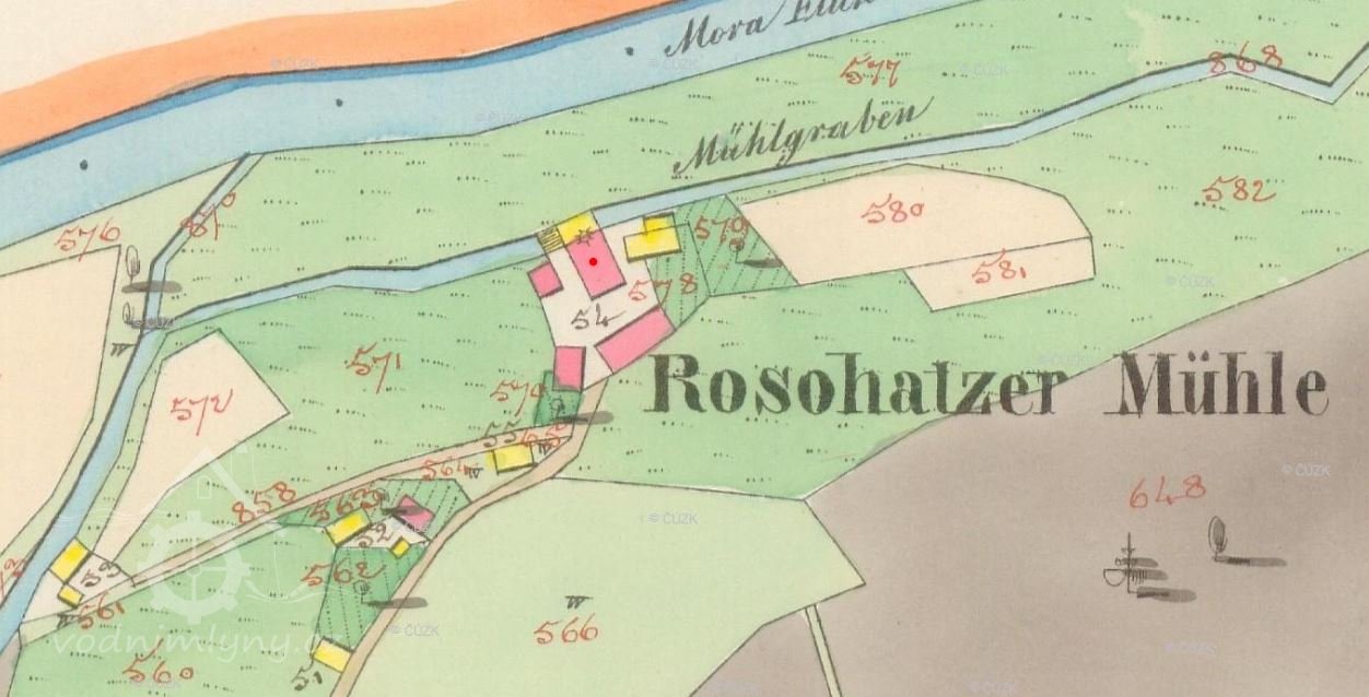 První zmínka o Rozsochackém nebo též Lesním mlýně pochází z roku 1574, kdy se v urbáři panství hradeckého u vsi Vojnovice (dnes Jelenice) uvádí mlýn „Rozsocháč“ na Moravici, který odváděl vrchnosti roční plat 8 zl. Prvním mlynářem kterého známe jménem je roku 1589 Pavel, mlynář na Rozsochackém mlýně a po něm roku 1595 Mikuláš mlynář. V první polovině 17. století byl mlynářem Jiří Gebauer, protože podle oddací matriky Hradce nad Moravicí se 24. července 1647 ženil Václav, syn Martina Jahna z Jančí s Annou dcerou Jiřího Gebauera „molitoris Rosochatensis“.