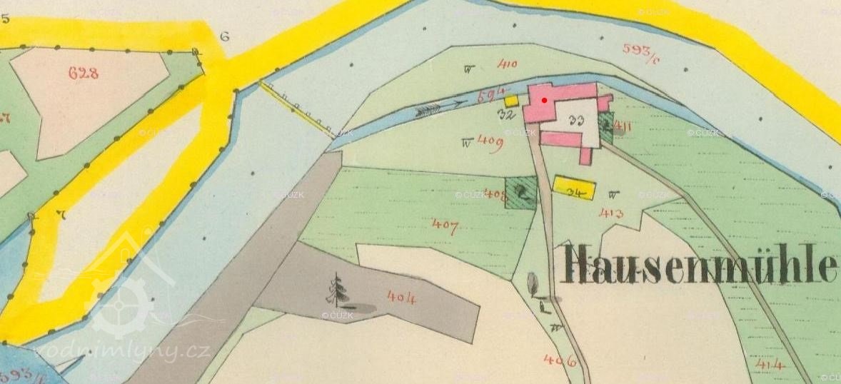 V r. 1836 vlastnil mlýn Josef John (RR).