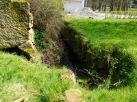 Druhé stavědlo asi 150 m před mlýnem, 6.4.2018, © Vladimír Kraus, (Prvky na obrázku: náhon, stavidlo)