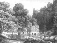 Romantický mlýn zachytila řadu malířů - např. A.E.Leonhardi z Loschwitz u Drážďkan nebo bedřich Havránek (1821-1899)