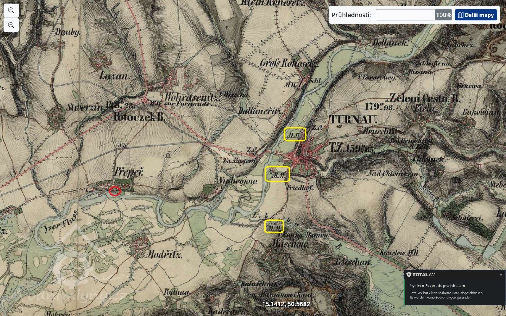 1872 Mlýn Kleinertův je o něco horší než byl před rokem. Loni musel pro veliké sucho docela stát a mlynář si mouku pro sebe mlel v Turnově. Nyní bude muset spravovat splav a možná pro to nebude mlet celé léto. Vloni se semlelo v tomto mlýně nanejvýš 150 korců obilí. Loňského roku spravoval jedno kolo a kolo vodní dal nové. Jaké výlohy při tom měl, nemůžeme posoudit. Jinou tržbu při tom neměl.