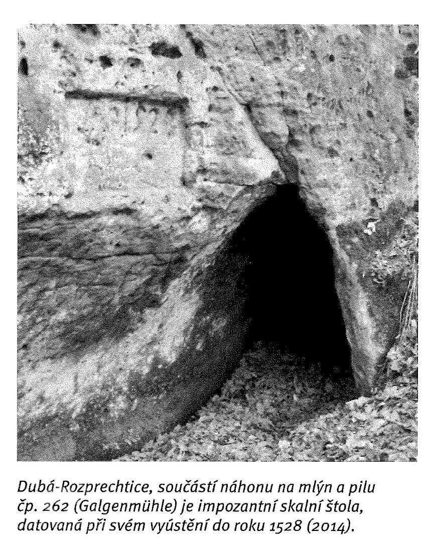 Datace strouhy A.o. 1528 u vyústění štoly, 2006, © Kamil Podroužek, (Prvky na obrázku: náhon)