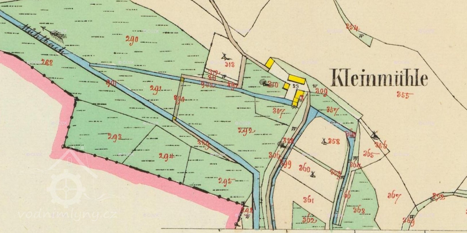Původně mlýn roubený. Po roce 1841 postaven zděný. (RŠ)