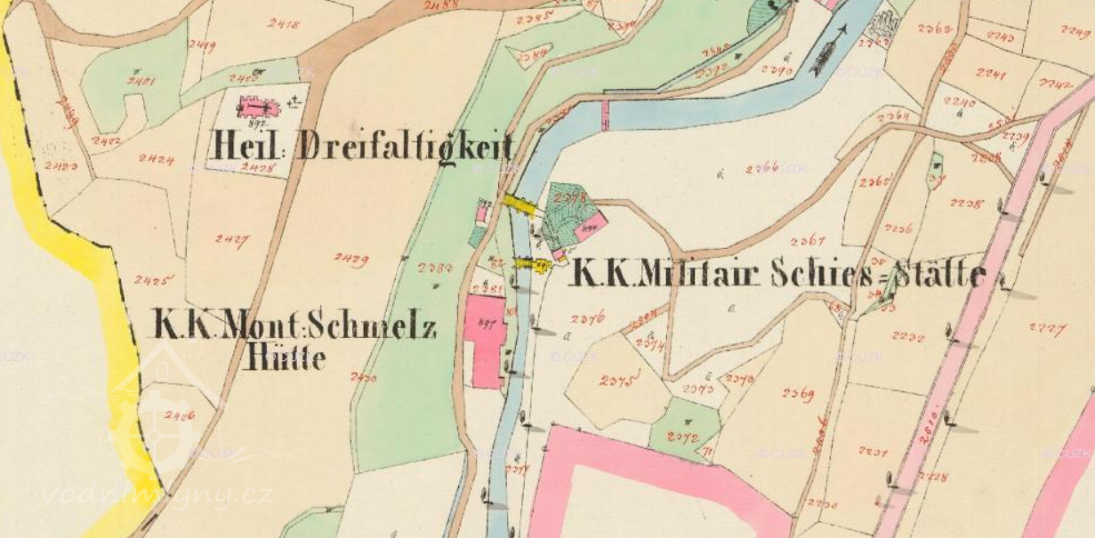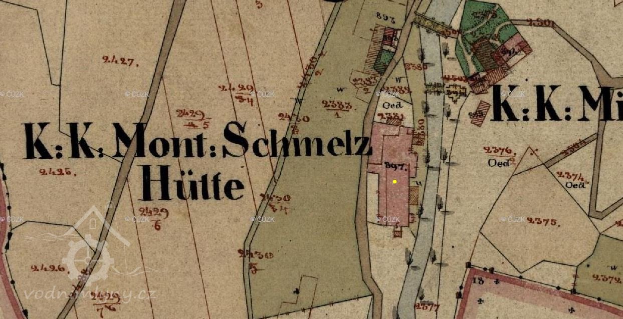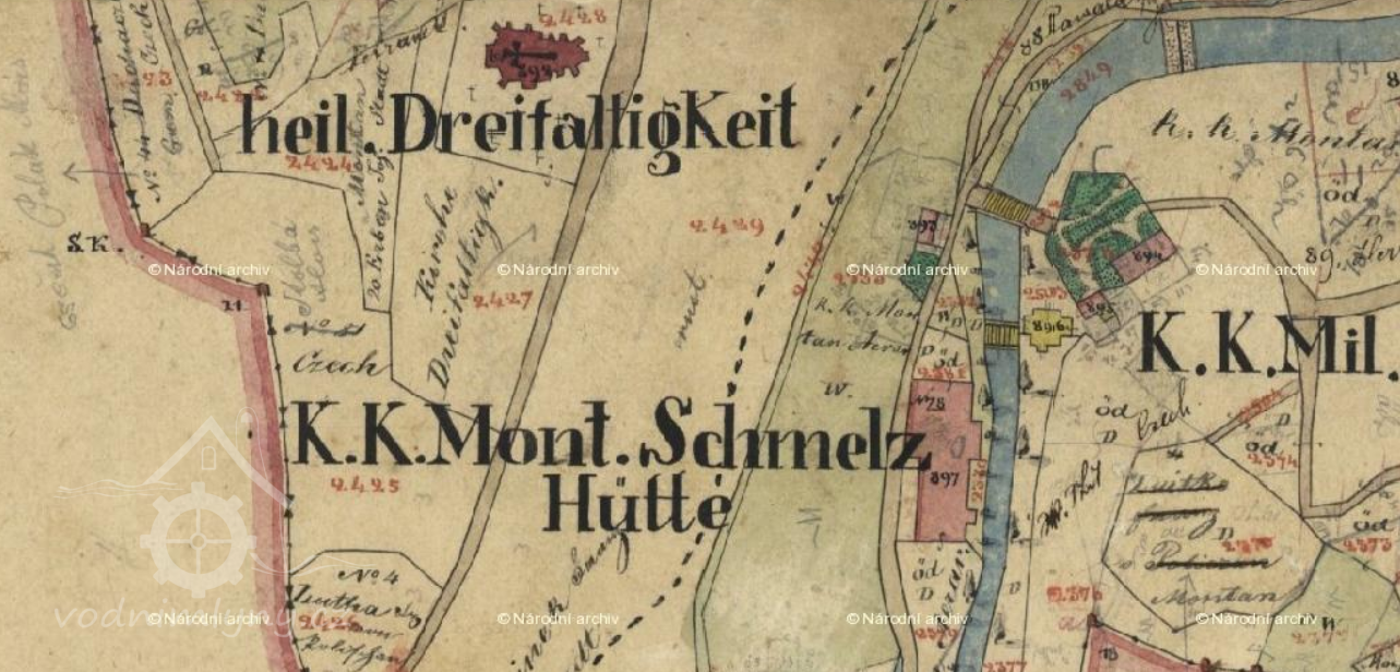 do roku 1850 c.k. Montánní šmelcovna (k.k. Montane Schmelzhütte)