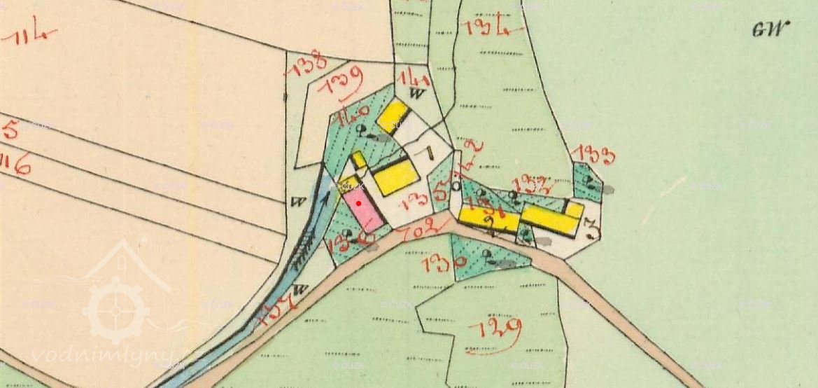 Vít Baštář emfyteuticky zakoupil, mlýn měl jedno složení, platilo se 8 zl. 56 kr. činže, přadla po 1/2 kusu, náhrada roboty 4 zl., gruntovní řinže 58 kr.