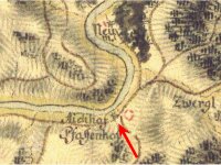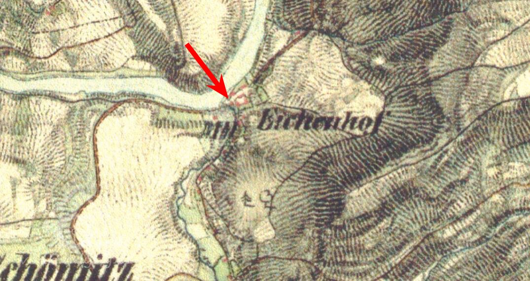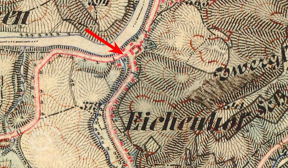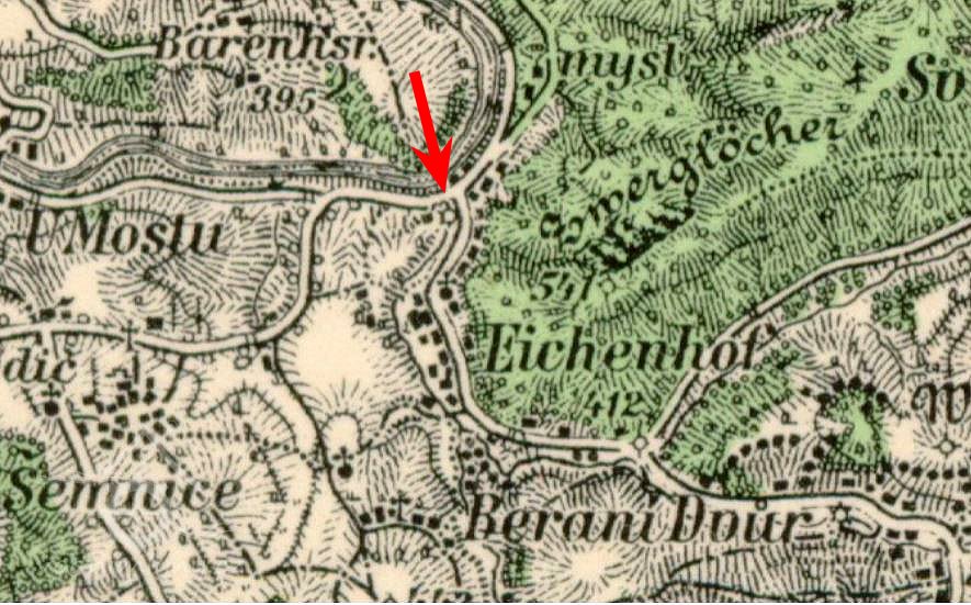 Na mapách II. a III. vojenského mapování je osada uváděna pod názvem Eichenhof. V matričních knihách pro obec Svatobor v letech 1660 – 1784 je uváděna také lokalita: Eichenmühle = bývalý mlýn u obce Šemnice.