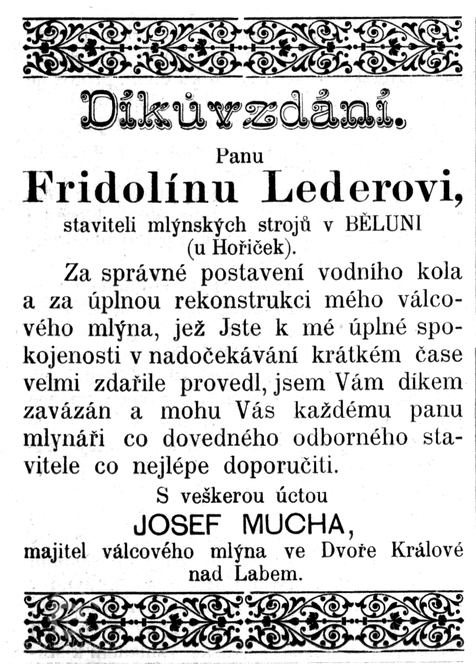 Marie Muchová, *1858, majitelka válcového mlýna a vodní pily