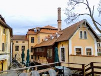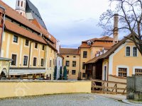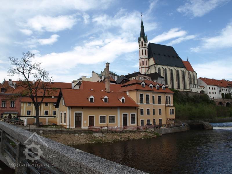 Objekt středověkého původu je zmiňován již v roce 1347, jako mlýn pod kostelem. V letech 1613 – 1614 byl celý areál renesančně přestavěn a provoz změněn na papírnu. Ve druhé polovině 18. století byla fasáda a krov obytného křídla upravena klasicistně. Po zboření Kájovských bran v roce 1881 byla v nově upravené uliční trase postavena historizující patrová budova. Další úpravy především obchodních vstupů byly provedeny na počátku 20. století. Kájovská 58 objekt středověkého původu, ale zřejmě pouze v přízemní části východního křídla valchy zůstaly dochovány zděné konstrukce z renesančního období. V 18. století přistavěn barvířský domek. V letech 1791 – 98 byly rekonstruována valcha. V roce 1869 nově přestavěna barvírna a v roce 1880 znovu upravena. V roce 1881 byla rekonstruována valcha a před rokem 1900 nástavbou 2. patra upravena do současné podoby. Kolem roku 1900 byla postavena západní přízemní část barvírny a trakt nad náhonem.