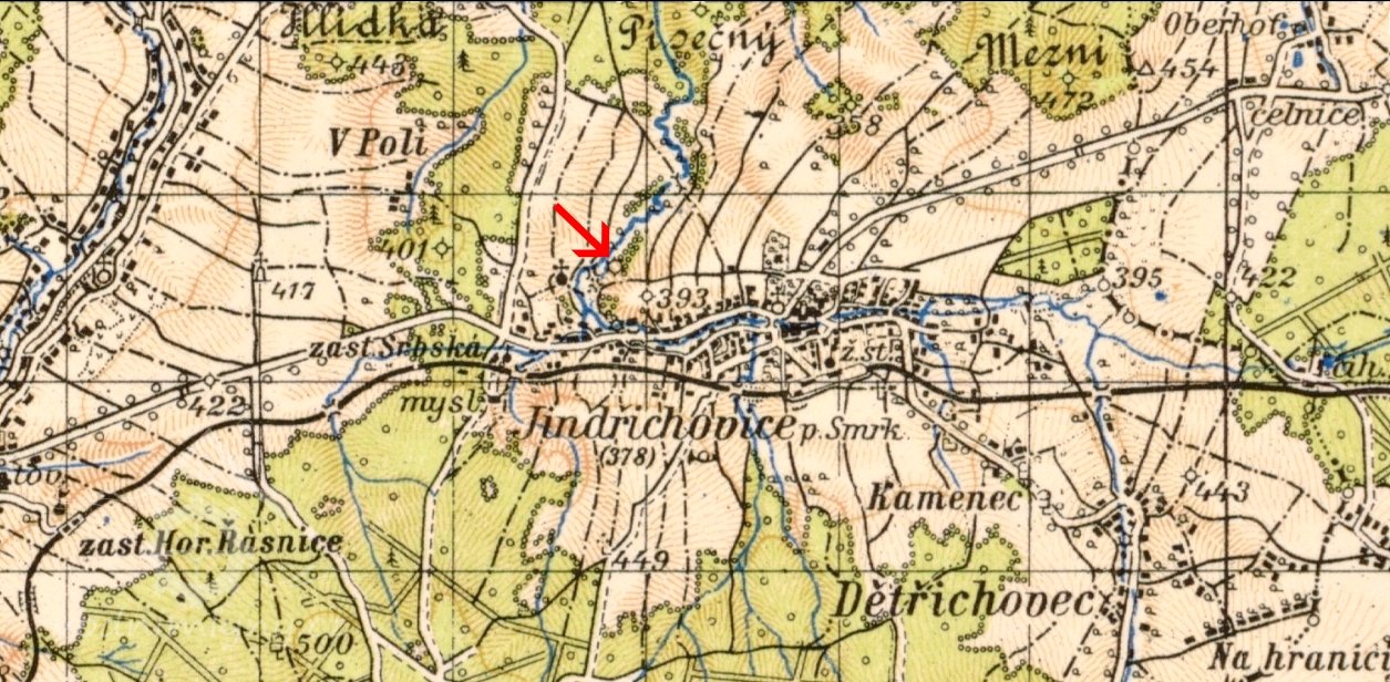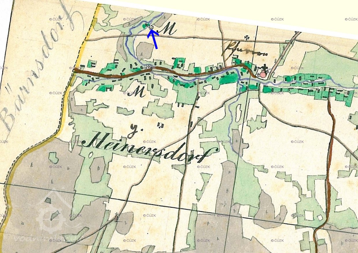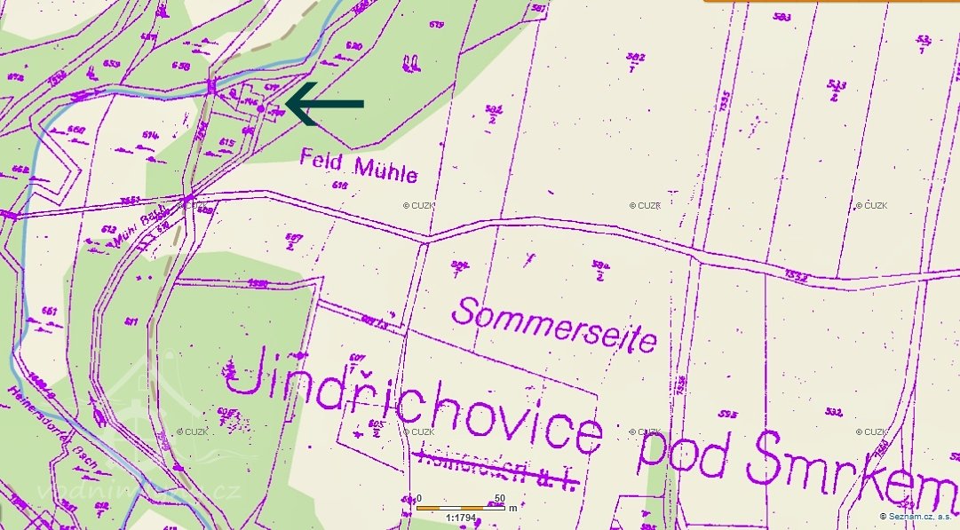1757 Tereziánský katastr - v Jindřichovicích 2 poddanské mlýny