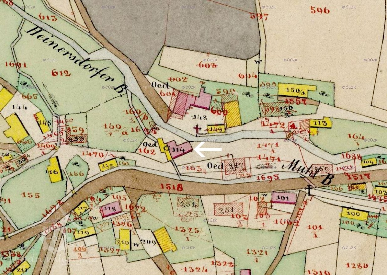 1757 Tereziánský katastr - v Jindřichovicích 2 poddanské mlýny