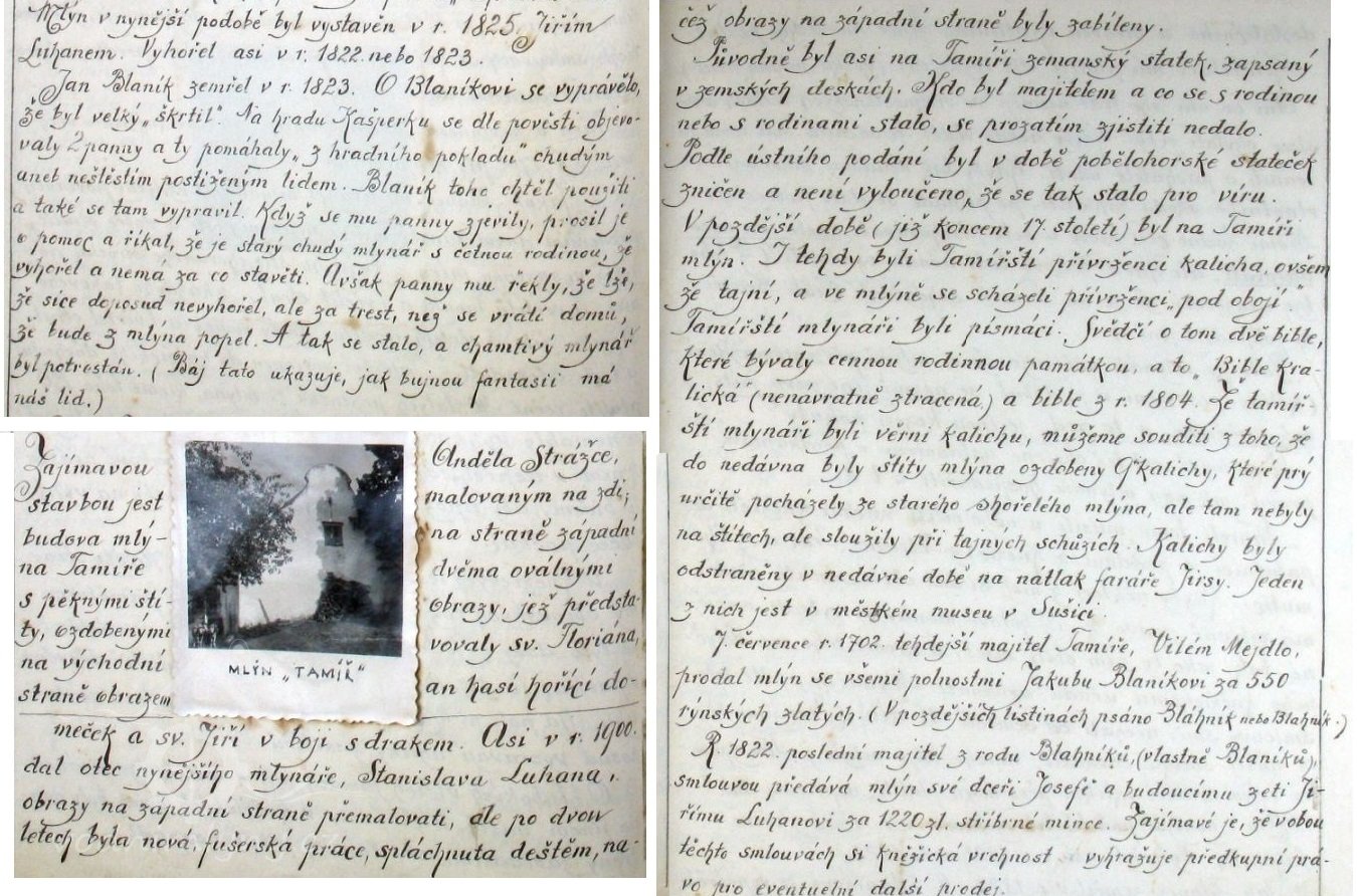 Původně byl na Tamíři zemanský statek, který byl v pobělohorské době zničen, protože se na něm scházeli přívrženci kališníků a vlastnili dvě bible - Kralická a další z roku 1804.