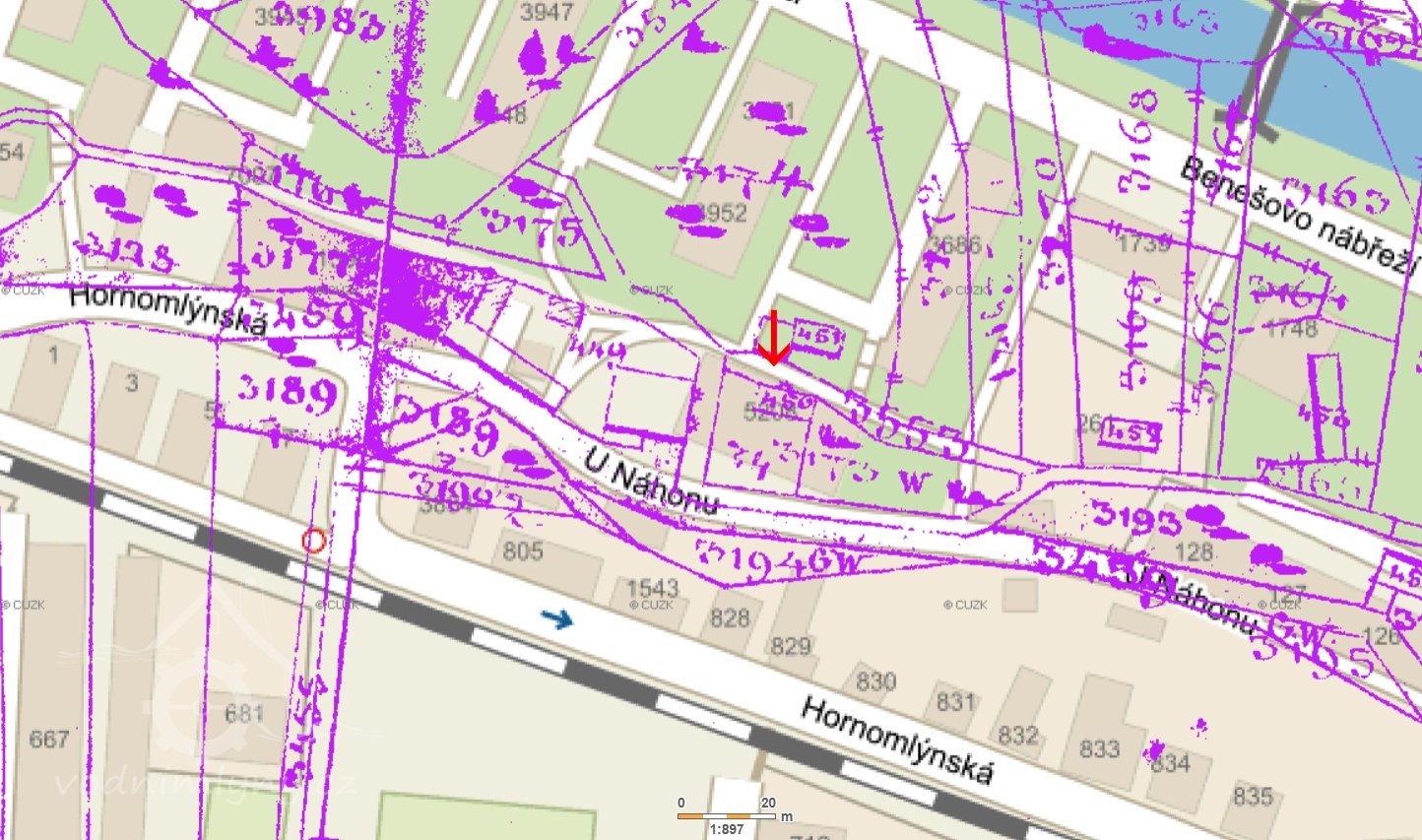 O zmíněném Horním mlýně máme zmínku již v roce 1557 a stával v místě mezi zmíněnou ulicí a Benešovým nábřežím, kde kraluje dnes dětské hřiště. Tam jej vidíme i na obraze města z roku 1846. Uvádí se, že v roce 1575 jej prodala vdova po mlynáři Pavlovi Barbora za 1100 zlatých panu Janu z Kunovic ve spolku s úředníkem Fridrichem Moškvicem. V roce 1592 držel na něm podíly Jan Cedlar z Hofu a Zdeněk Žampach z Potštejna. A roku 1614 seděl na něm nějaký Jan Záruba.