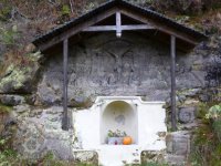 Reliéf Ukřižovaného Za touto lidovou plastikou, na které je zdejší kraj mimořádně bohatý, je ve skále vytesán náhon, který do mlýna přiváděl vodu z Hamerského potoka (resp. z dnes již zaniklého rybníčku nad silnicí Mařenice - Naděje)., 2008, © Vladimír Kraus, (Prvky na obrázku: náhon)