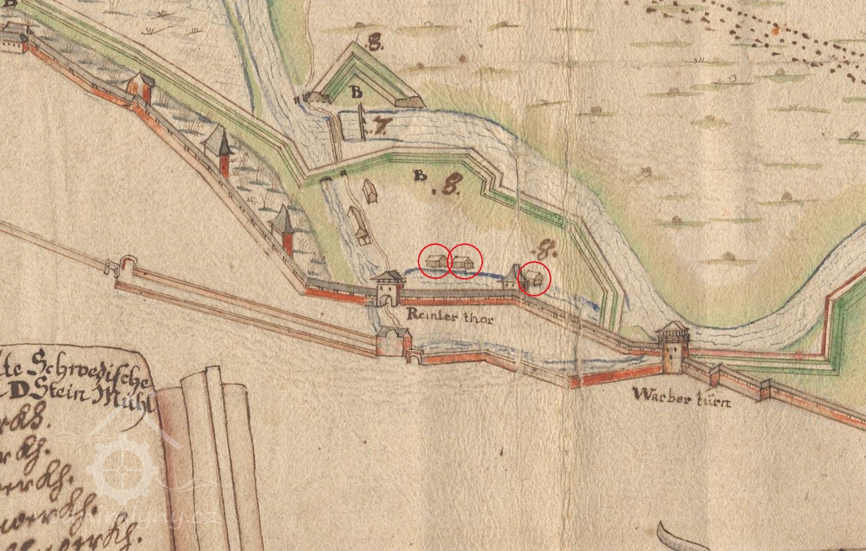 Také 16. století je bohaté na zprávy o těchto mlýnech nebo o objektech u něj se nacházejících. Stejně tak se množí zprávy o sporech, které vyvstaly v souvislosti s budováním a udržováním různých vodních děl v okolí města, sloužících pro jeho potřebu, jako např. vodárny, jezů, hamů, stavidel atd. V r. 1513 máme na některém z mlýnů doloženého mlynáře Mikuláše.