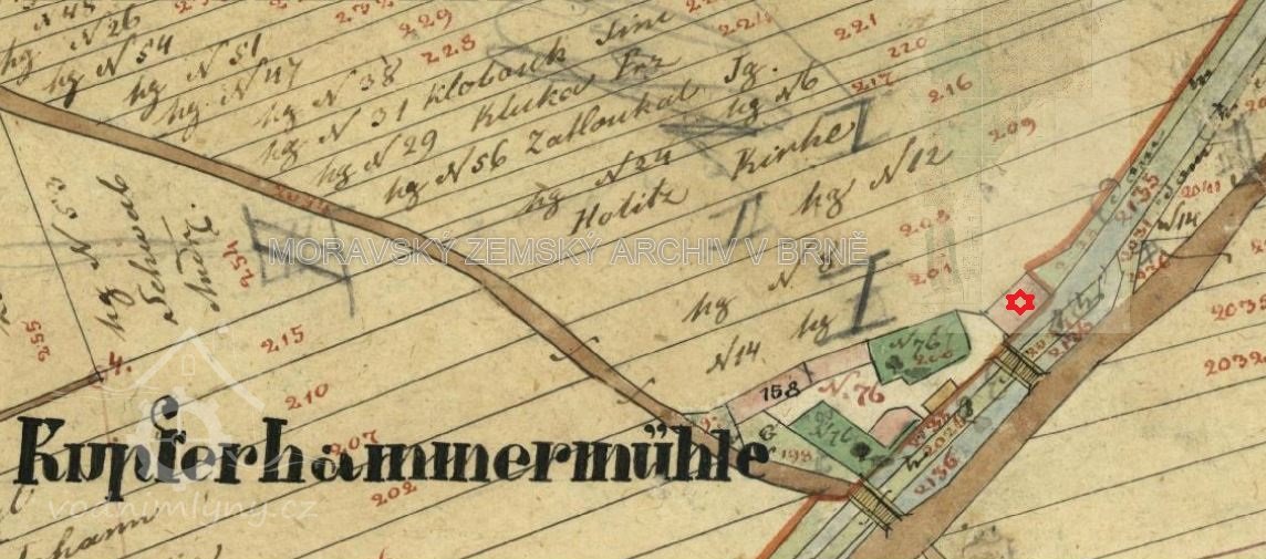 Maxmilián Herold, který získal měděný hamr v r. 1792, dosáhl v r. 1808 povolení od hospodářského direktoria olomouckého magistrátu zřídit vedle původního měděného hamru se dvěma složeními další dvě složení pro mletí obilí, z nichž by platil nájem 180., přičemž kovářskou živnost provozoval nadále. Za jeho působení zde proběhly v letech 1830-1831 velké stavební úpravy mlýna, které daly budově její konečnou podobu. Herold držel mlýn č. 76 až do r. 1833, kdy ho smlouvou z 2.10. propachtoval mlynáři Augustinu Prachtlovi z Povlu za 6900 zl. konvenční měny a roční činži 202 zl. 50 kr. Tehdy měl mlýn dvě složení na mletí mouky a jedno na mletí borku (duběnky - Knopperngang). Zdá se však, že k této koupi v plném rozsahu nedošlo, protože 1.9.1834 přenechal Maxmilián Herold týž mlýn se dvěma složeními a činží 180 zl. za 8000 zl. Janu Wichodilovi. Za jeho působení ve mlýně se zde ještě r. 1841 nacházela celkem tři složení - dvě obilní a třetí na mletí borku - z nichž platil celkově roční nájem 202 zl. Podle protokolu z r. 1771 bylo povinností vrchnosti vést vodu na mlýn od Bystrovanské jezu až k prahu a celý tento příkop udržovat. Mlynář měl za to čistit druhý vodní příkop u mlýna (na odvádění přebytečné vody), vodu zadržovat pro níže ležící holický mlýn, dbát na to aby nezaplavovala sousední pole atd. V r. 1841 a také v r. 1849 se v celém objektu nacházel mlýn na obilí (dvě složení), ve vedlejší budově kovárna a jedno složení sloužilo na mletí borku (od r. 1835 přeměněné na složení obilní), dále pak lis na olej a pila.