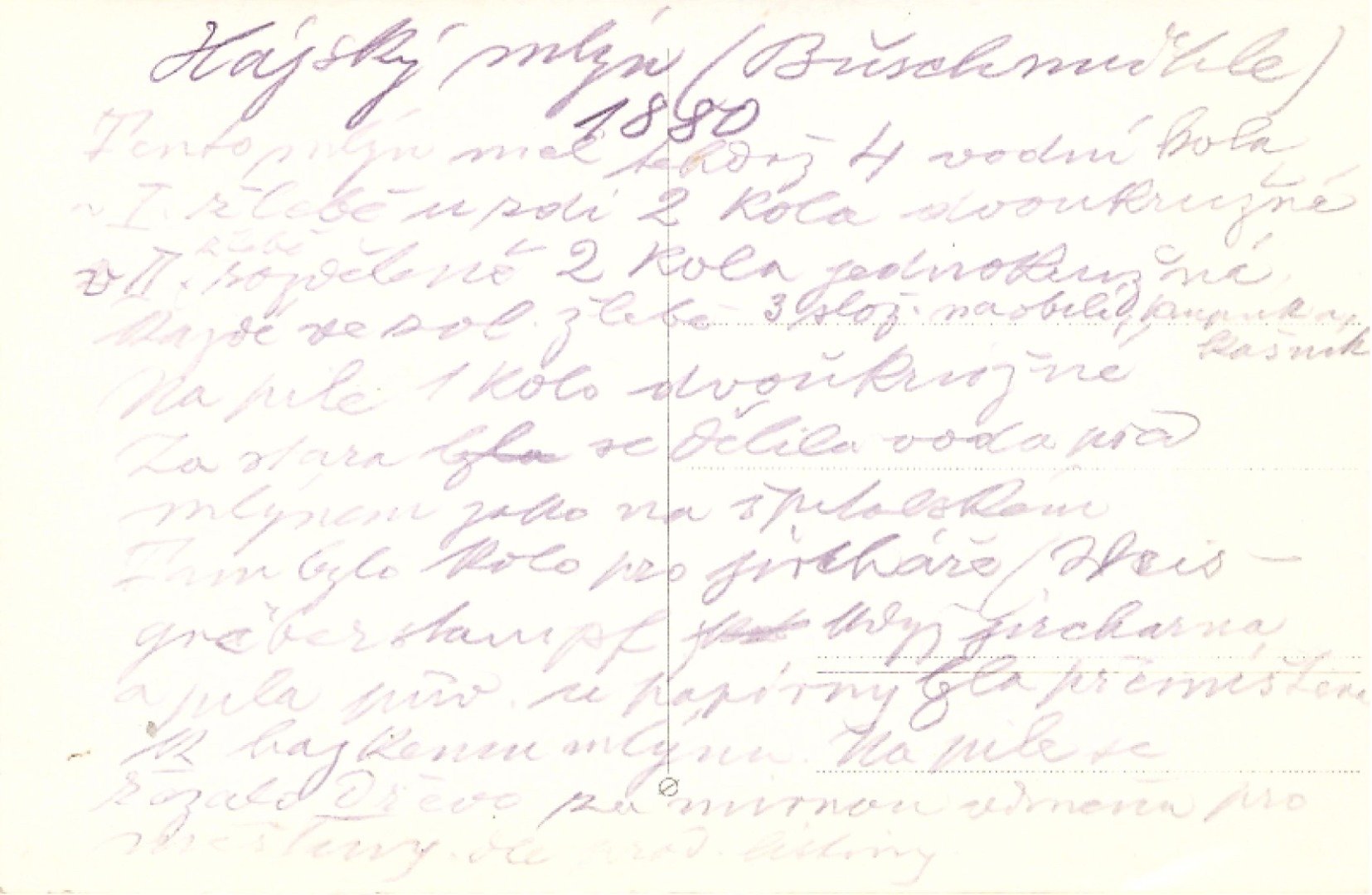 Od roku 1900 vlastnil mlýn František Vymětal, který jej dle vyprávění koupil od nějakého p. Šipka, jehož podpis byl na tzv. okenici.