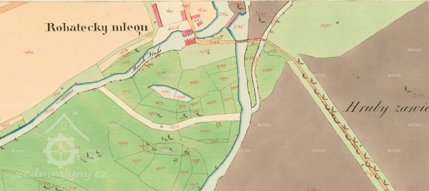 Mlýn měl dvě poschoďové budovy a mezi nimi protékal mlýnský náhon na dvě náhonná kola. Byl na tehdejší dobu technicky vyspělý. Dle starých záznamů měl sedm vyložení a mlel mouku velmi jemnou. Velký rozvoj Kolonie nastává teprve v druhé polovině 19. století kdy vídenští podnikatelé a bankéři Karel a Rudolf Azpitzovi v roce 1863 dostavuji v blízkosti panského dvora jeden z prvních cukrovarů na Moravě. Kolem byla postavena kolonie domků pro zaměstnance, odtud název Kolonie. To byl také základ k pozdějšímu rozvoji průmyslu v této části. V roce 1865 zde byla zřízena železniční stanice Rohatec na tehdejší nové železniční trati pojmenované Severní dráha císaře Ferdinanda zprovozněné 1841.