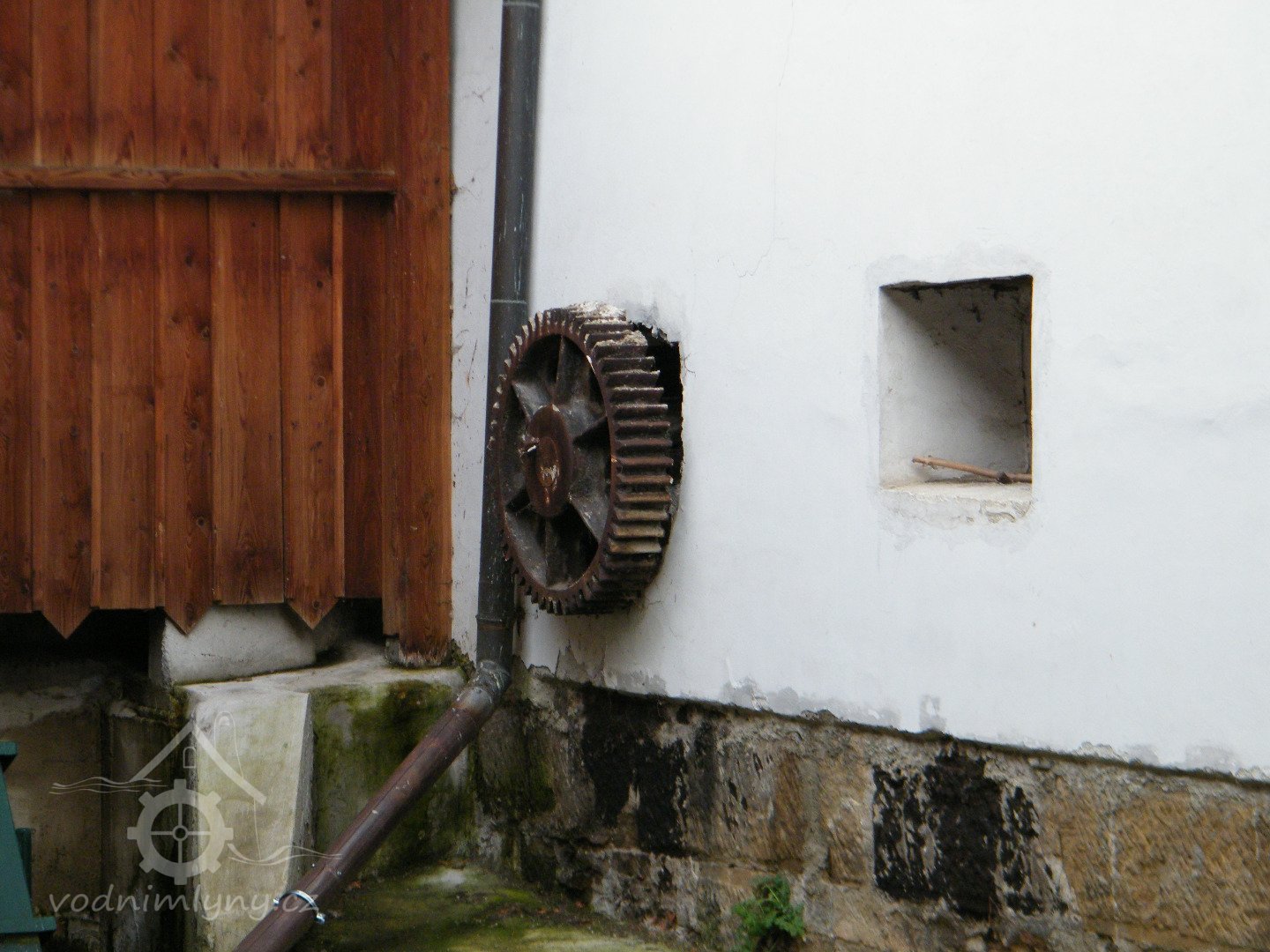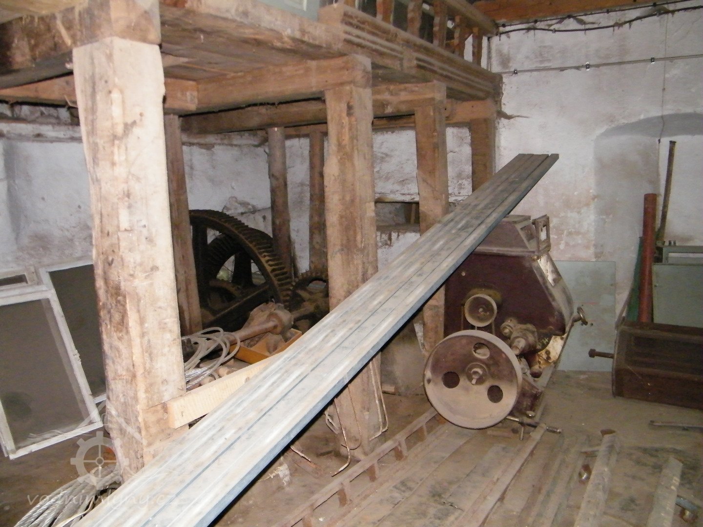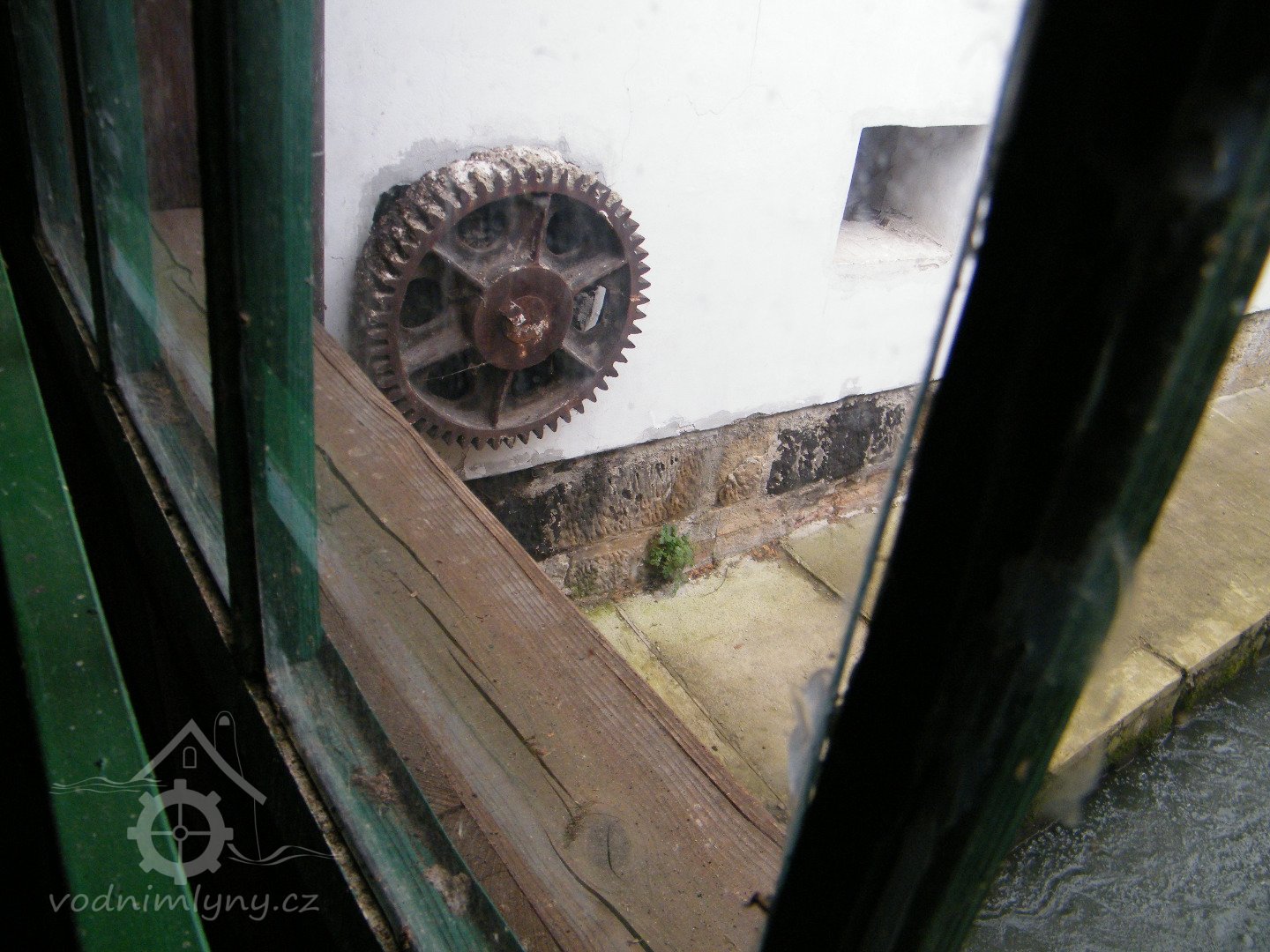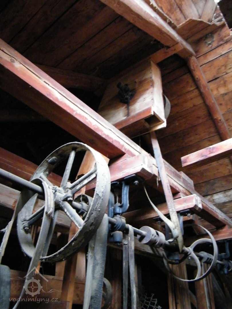 V pozadí převody z doby kdy mlýn pohánělo vodní kolo, 27.1.2018, © Čenda Šopek, (Prvky na obrázku: transmise, řemenice, převody - ozubená kola, pastorky (průmyslový výrobek))