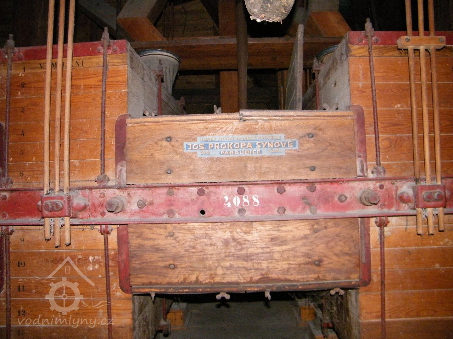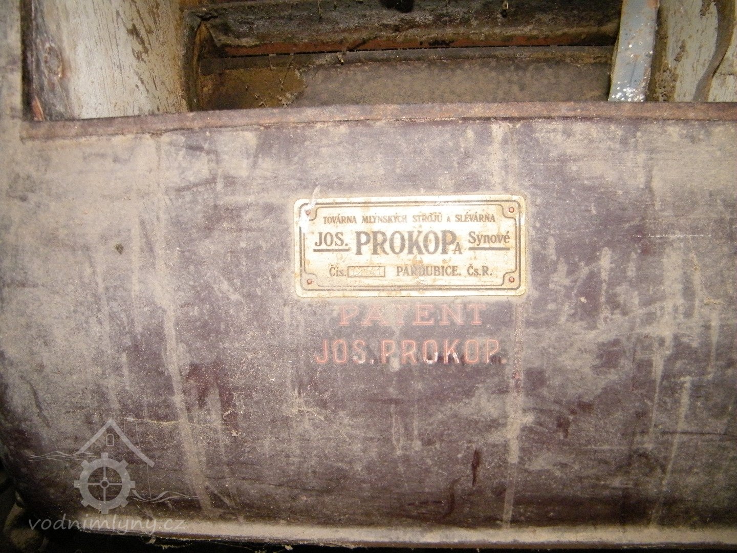 Sobáčovský mlýn - technické vybavení, 27.1.2018, © Čenda Šopek, (Prvky na obrázku: značka výrobce na technologickém vybavení)