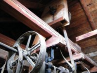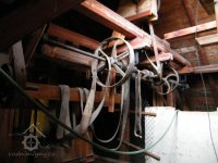 Sobáčovský mlýn - technické vybavení, 27.1.2018, © Čenda Šopek, (Prvky na obrázku: transmise, řemenice, převody, transmise, řemenice, převody - transmisní hřídele s řemenicemi (výrobek průmyslový i řemeslný))