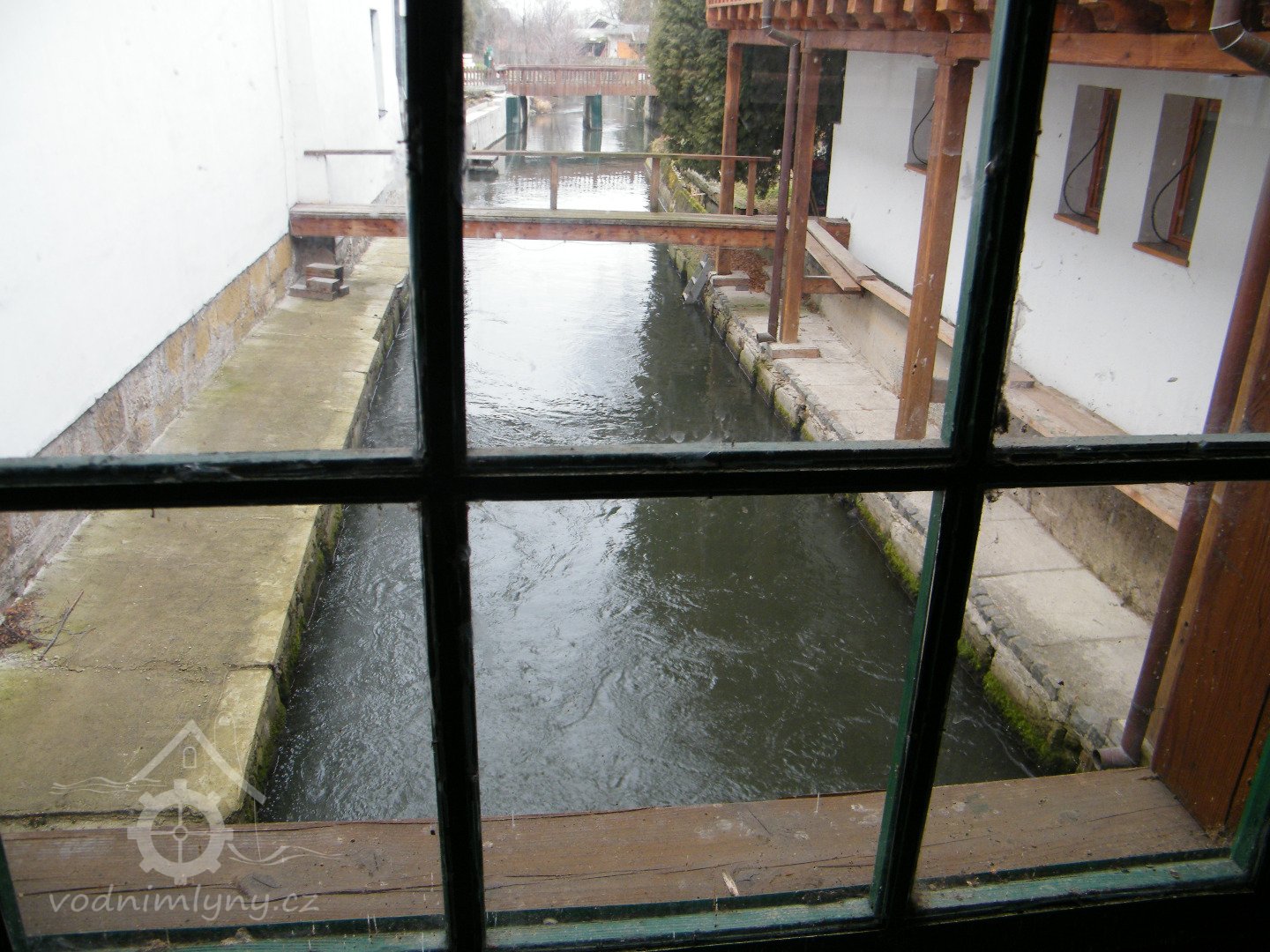 Sobáčovský mlýn - pohled na mlýnský náhon z turbínového domku, 27.1.2018, © Čenda Šopek