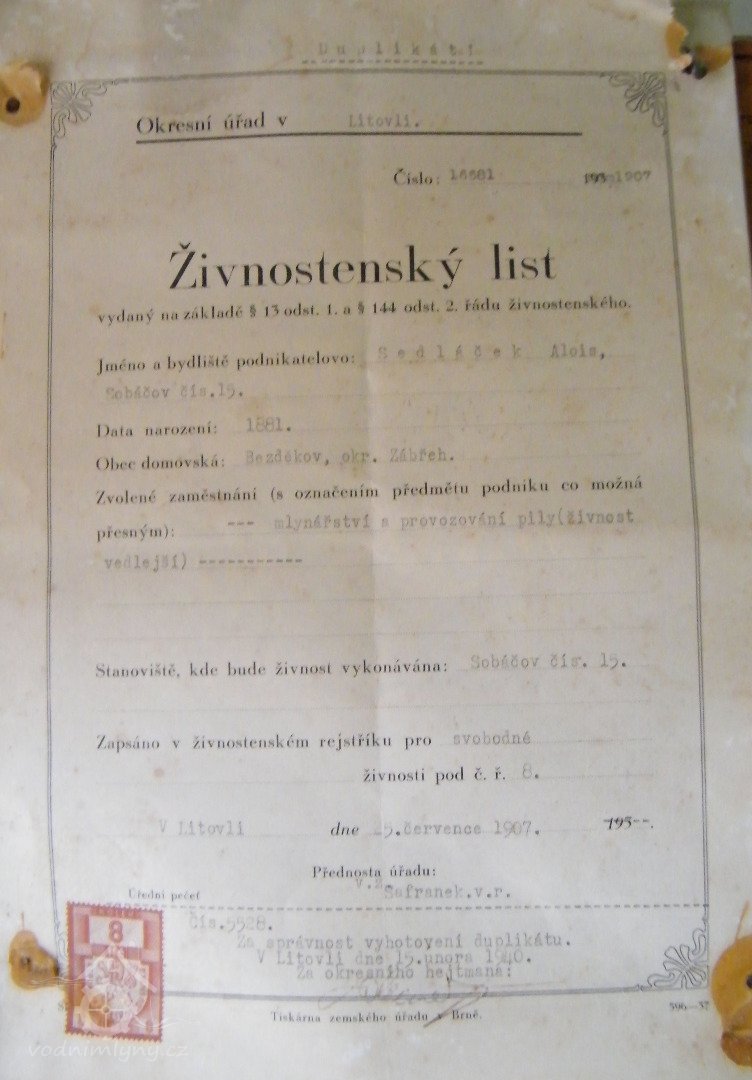 Sobáčovský mlýn - mlynář, nedatováno, © reprofoto Čenda Šopek