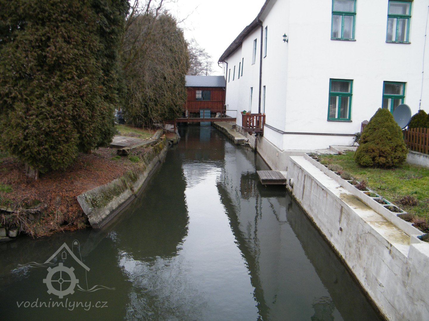 Sobáčovský mlýn - mlýnský náhon za turbínovým domkem, 27.1.2018, © Čenda Šopek, (Prvky na obrázku: turbínový domek)