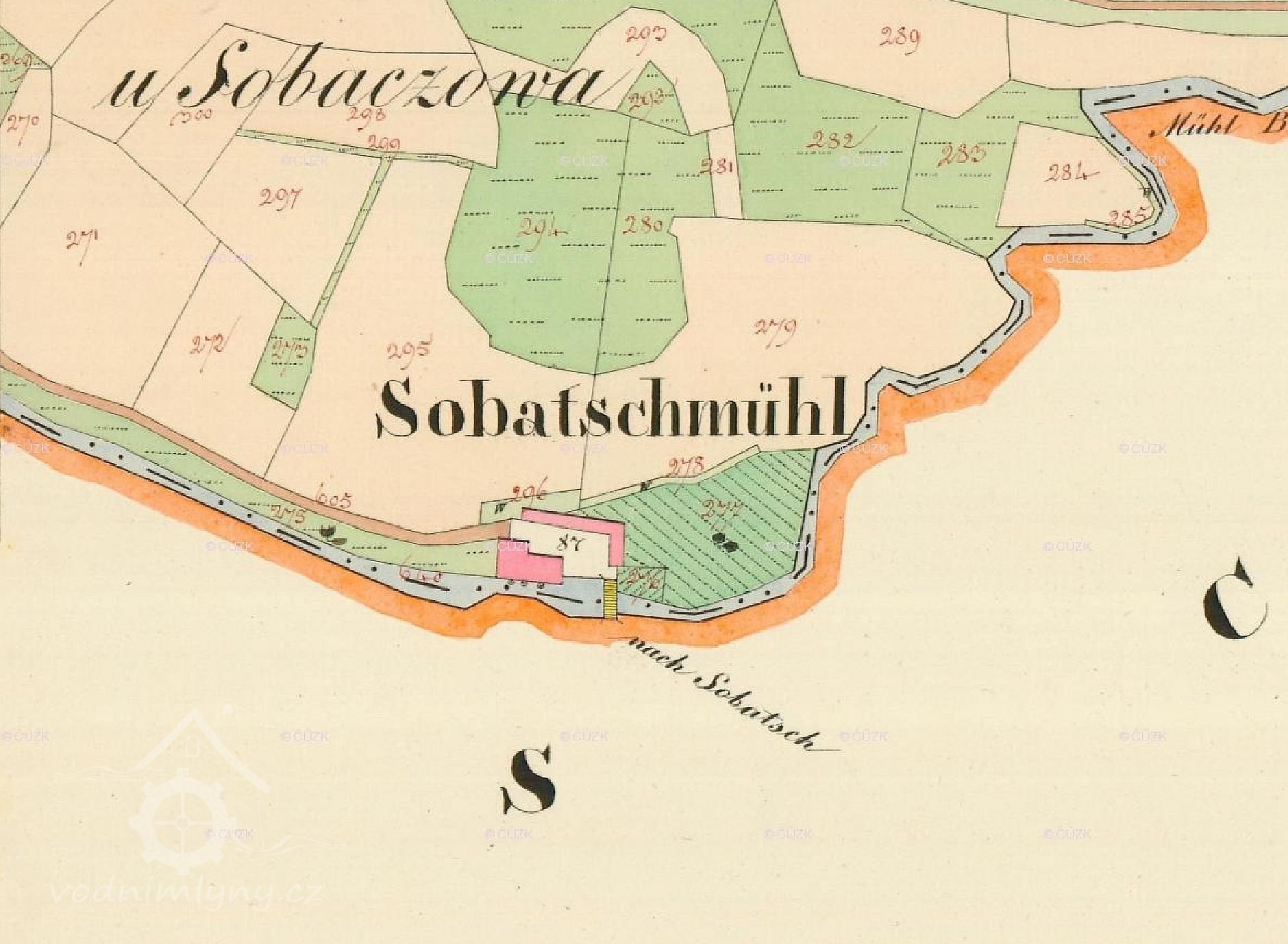Císařské povinné otisky - Sobáčovský mlýn, 1834, © archivnimapy.cuzk.cz